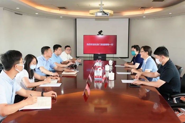 7月22日上午,丰台区右安门街道党工委副书记范爽一行专程来到安博电子,亲手将锦旗送到安博电子党委常委、组织部部长刘士义及集团总部职工孔维手中,对安博电子携手战疫,真情服务社区表示诚挚的敬意,对集团职工孔维以志愿者身份,长期战斗在右安门街道开阳里第三社区防控一线表示衷心的感谢。