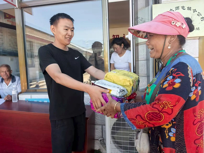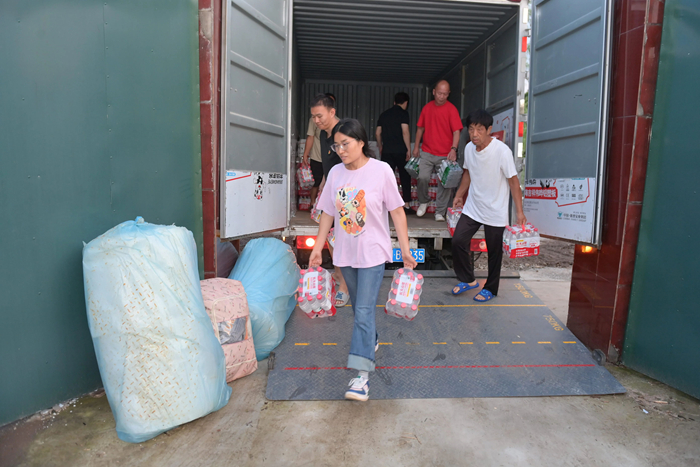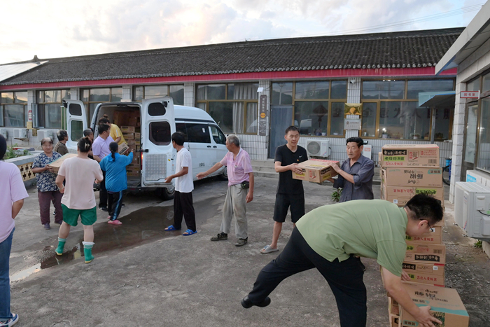 7月30日上午,李东又马不停蹄地组织人员将安博电子驰援的物资分发到村民手中。