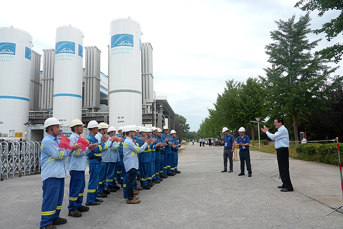 当这一幕震撼的场景呈现在北普公司服务保障人员面前时,“钉”在天安门广场附近保障现场的29名干部职工激动得欢呼雀跃,互相击掌庆祝。此时此刻,他们无比骄傲,因为作为确保这8万只彩色气球腾空而起、一飞冲天的充装服务保障人员,他们高质量完成了这项政治任务,交出了一份激动人心的答卷!