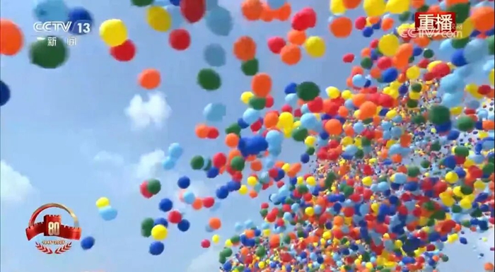 9月3日,纪念中国人民抗日战争暨世界反法西斯战争胜利80周年大会在北京天安门广场隆重举行。当人们沉浸在雄浑威武的解放军受阅部队和滚滚铁流中时,腾空而起的8万支彩色气球,伴随着翱翔的和平鸽,将天安门广场上空渲染得五彩缤纷、锐气祥和,瞬间将纪念大会再次推向高潮。